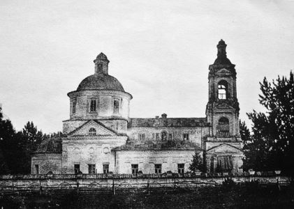 Большая часть свидетельств взята из метрических книг Николаевской церкви села Арсеньева Слобода и метрических книг Троицкой церкви села Федьковая Слободка Чухломского уезда Костромской губернии. К приходу последней относилась, собственно, деревня Пахтино. В этом храме была крещена бабушка А.А. Зиновьева, венчались родители и были крещены старший брат и сестры, уже поэтому нельзя обойти его вниманием. Сама церковь, большая, каменная, двухэтажная, с 4-мя престолами, с колокольней, была построена в 1803 году тщанием прихожан (ГАКО, ф. 130, оп. 13, д. 350, л. 82-84 об. взять только лл. 82-82 об.!). Сегодня от нее сохранились только полуразрушенные стены (фото).