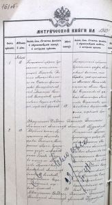 Однако на момент бракосочетания Якова Петровича и Параскевы Прокопьевны фамилия «Зиновьевы» в документах – прежде всего, метрических книгах – еще не значится. Нет ее и в метрической записи о рождении отца нашего героя Александра Яковлевича (14.07.1888 – 1964) (ГАКО, ф. 56, оп. 25, д. 229, л. 99 об., 100.). В выявленных нами документах фамилия «Зиновьевы» впервые встречается в 1909 году в метрической записи о бракосочетании Александра Яковлевича и Аполлинарии Васильевны – родителей ученого (фото, ГАКО, ф. 56, оп. 25, д. 231, л. 161 об., 162.).